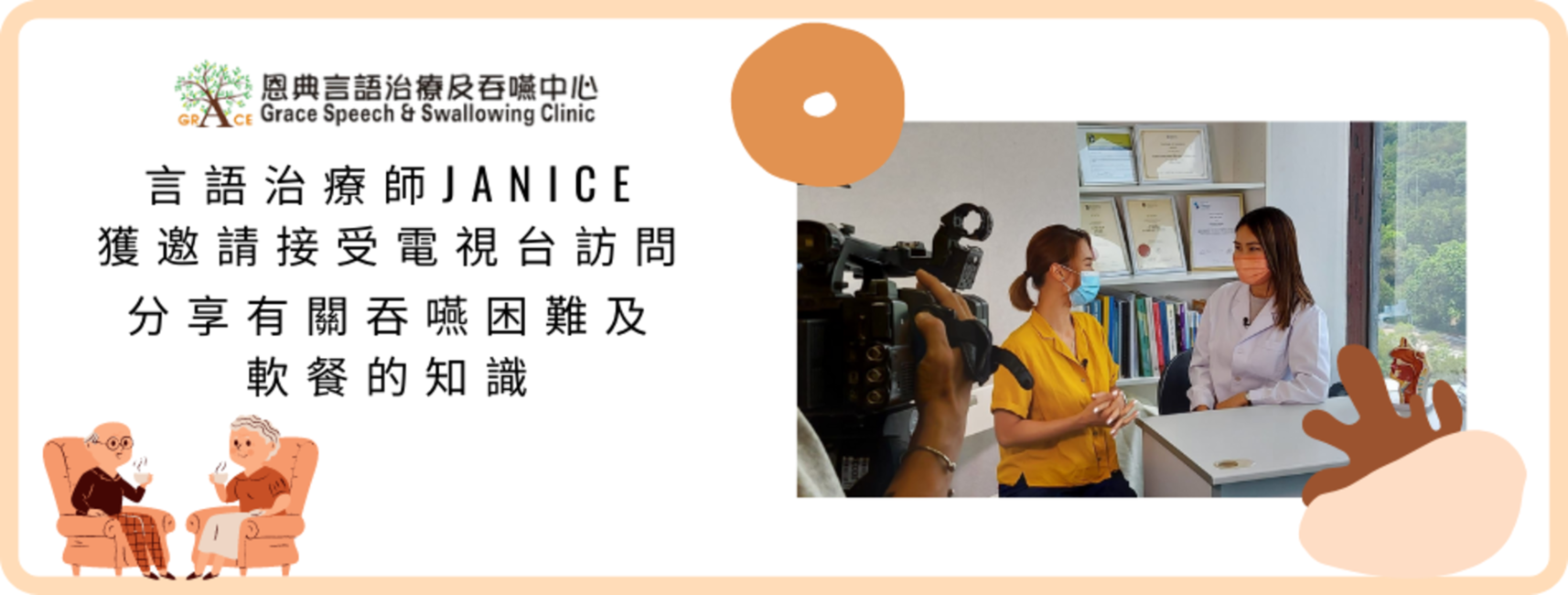 中心簡介: 恩典言語治療及吞嚥中心提供專業及貼心的服務,致力協助患者提升溝通及吞嚥的能力, 讓他們改善日常生活,創造美好的人生。 我們提供專業的評估及治療服務, 專業團隊包括:輔導心裡學家、言語治療師、營養師和音樂治療師。